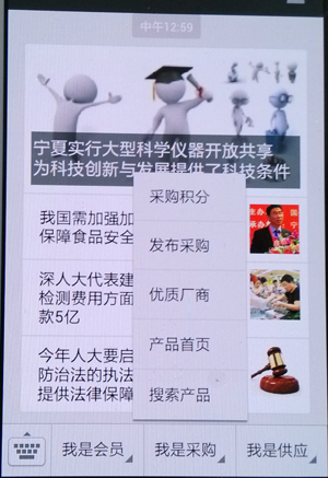 2、我是采購 菜單功能有:搜索產品、產品首頁、優質供應商、發布求購、采購積分