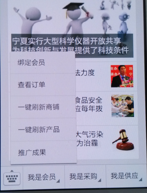1、我是會員 菜單功能有:綁定會員、查看訂單、一鍵刷新商鋪、一鍵刷新產品、推廣成果